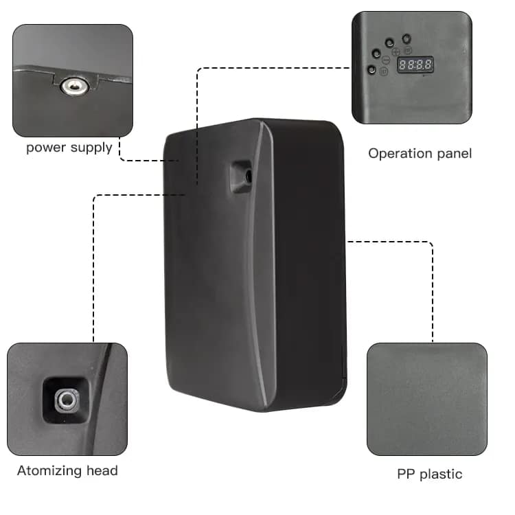 5: Gas liquid separation. Avoid traditional blockages. Fragrance spray technology limit,to ensure that every drop of pure fragrance diffusion ,instant direct. Precision intelligent control of computer main control board.